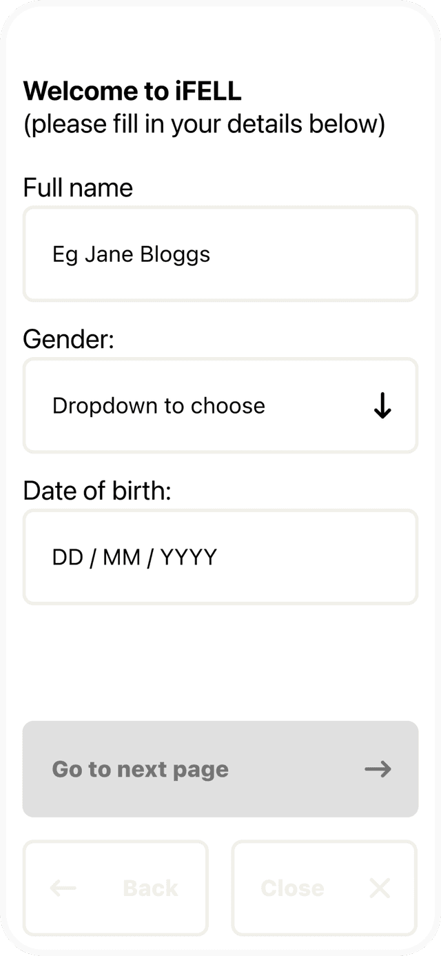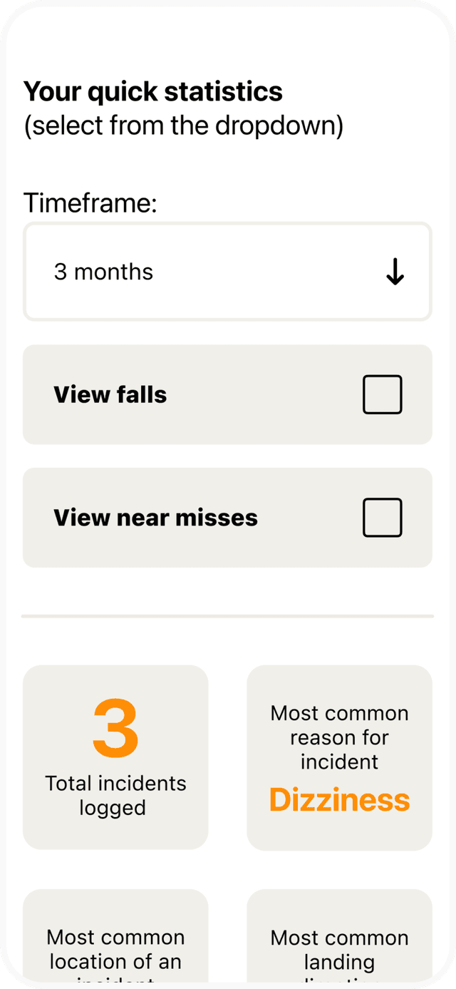 Working closely with Dr. Morris and her collaborators, we designed and developed the iFell mobile app from the ground up. The app allows users to log both falls and “near misses” through a simple, question-led flow. Over time, it builds up a rich picture of patterns, locations, causes, and outcomes — data that can be shared with clinicians, researchers, or support networks.