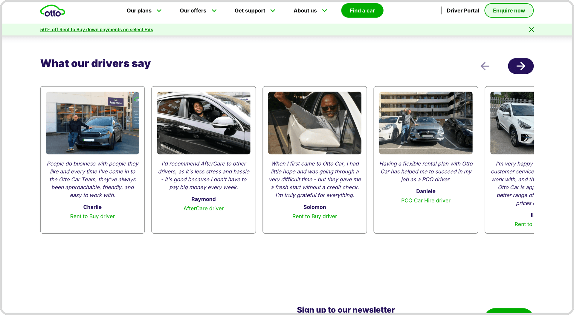 We worked with Otto Car to design a high-performance, mobile-first website experience tailored to PCO drivers. The new platform supports scalable onboarding, smart integrations, and improved lead conversion, all underpinned by a flexible design system ready for growth.