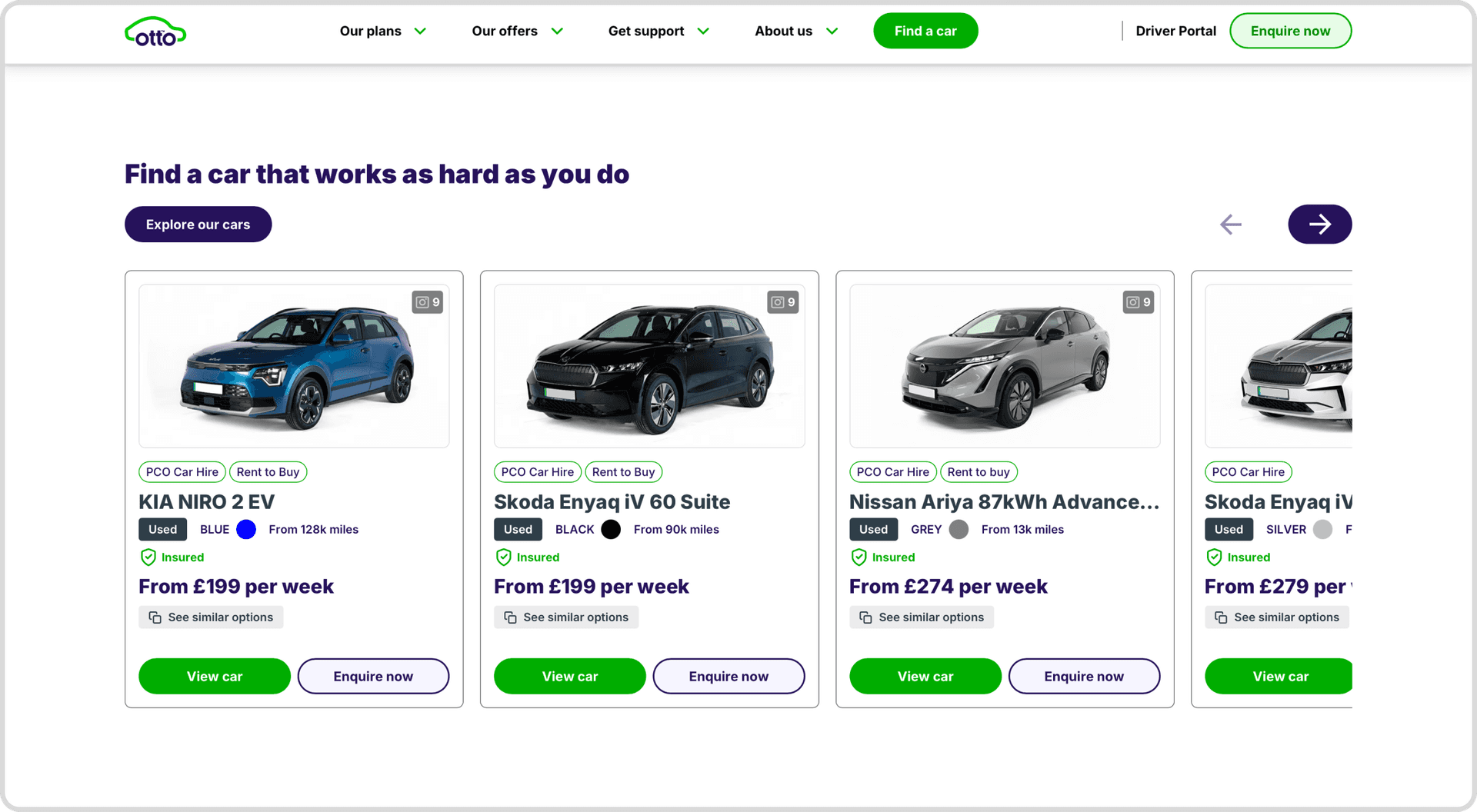 Crucially, the project was delivered as a true partnership: while Arch owned the UX and UI strategy, visual design, and prototyping, Otto Car’s in-house developers led the build, using Payload CMS and a headless architecture to bring the experience to life.