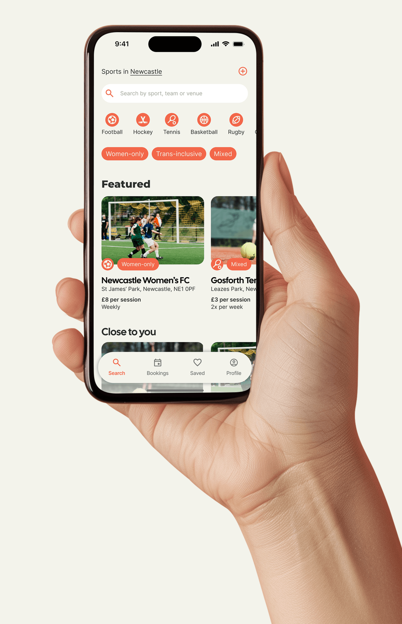 We’re working with TOMME Studio on Playbookd – a location-based sports app helping women, non-binary, and trans users find safe, welcoming ways to get active in their communities.